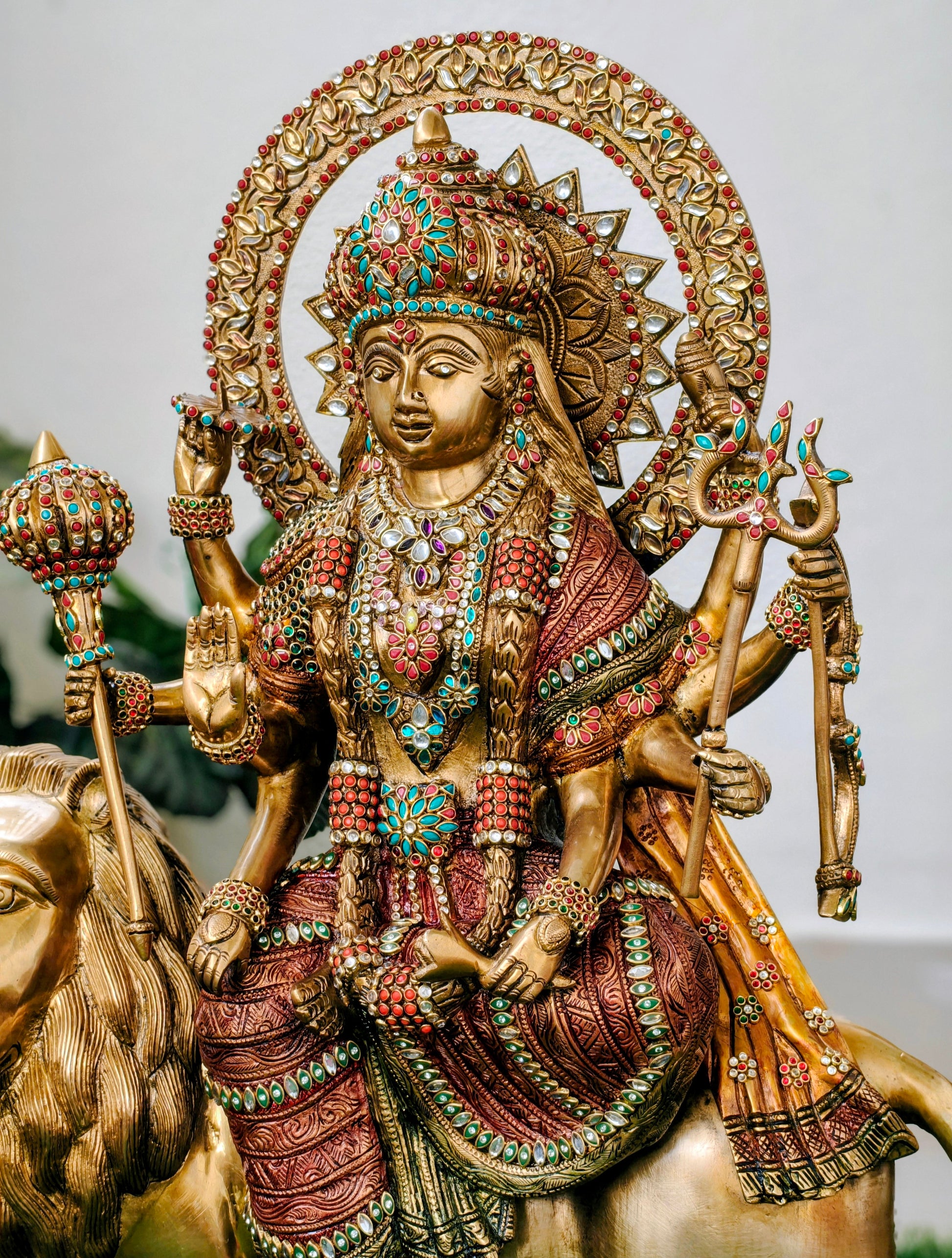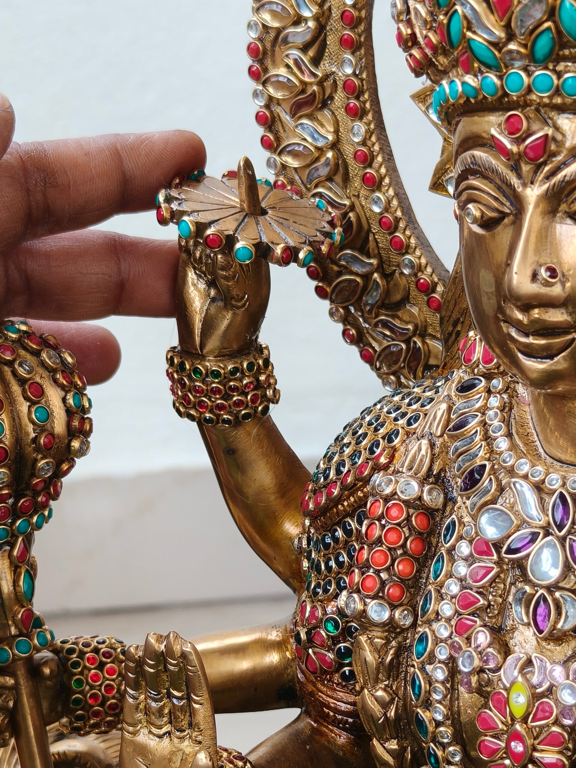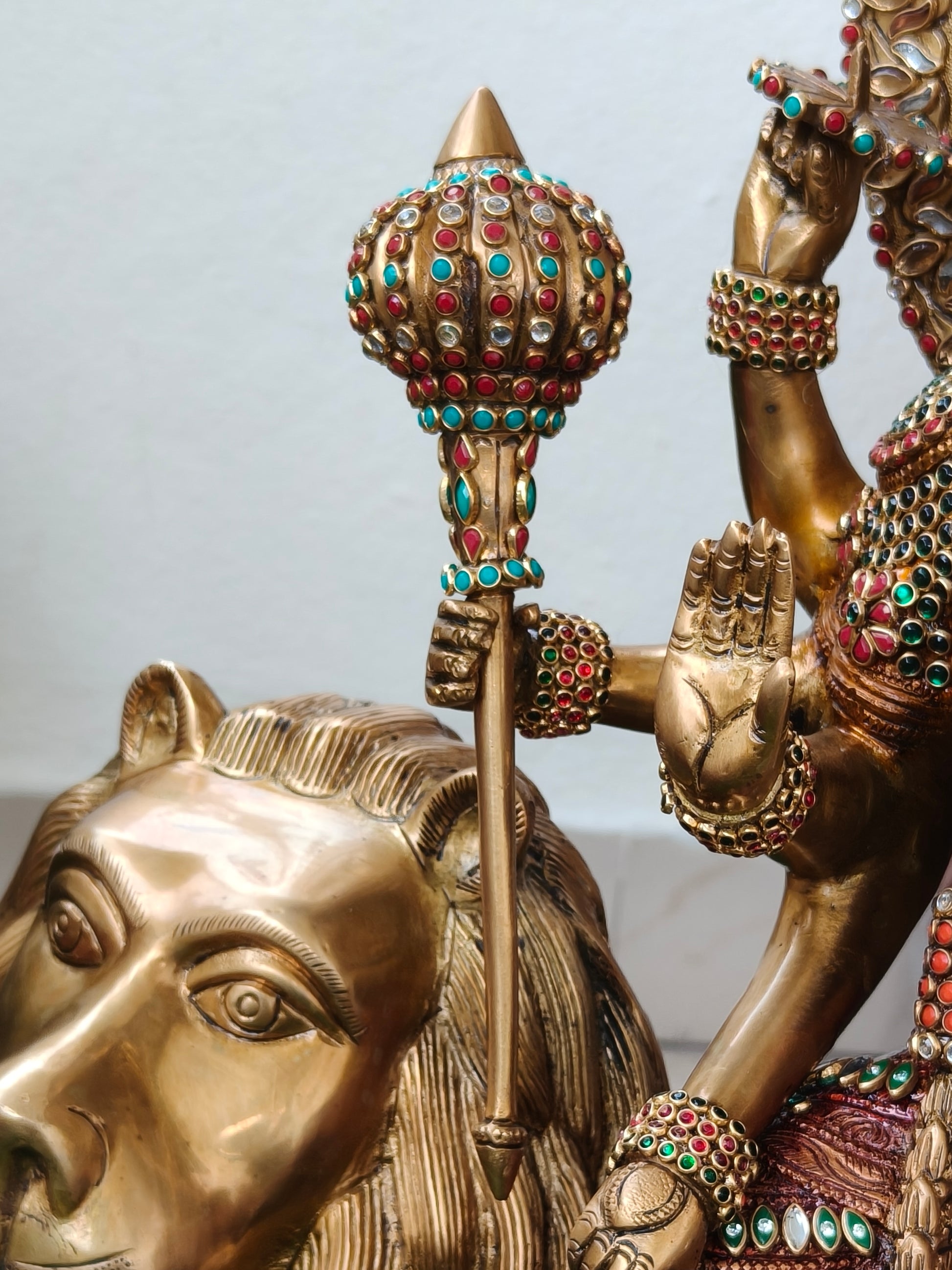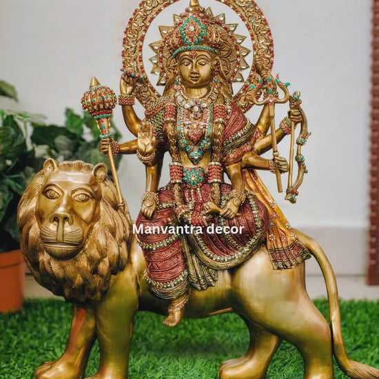 Beautiful Durga idol, pure brass , Handcrafted with kundan stones.