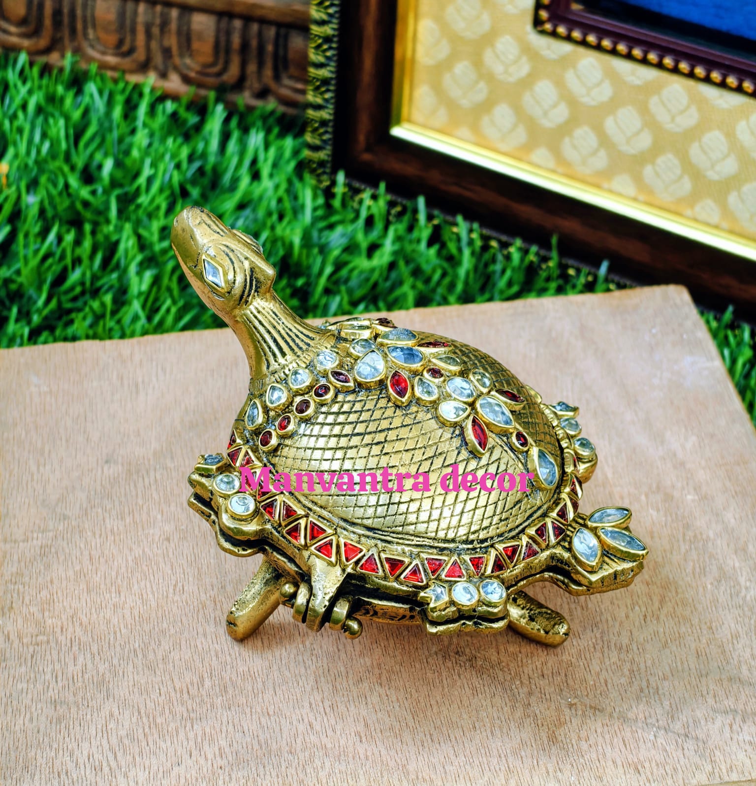 Turtle shape kum kum box with kundan work in pure brass